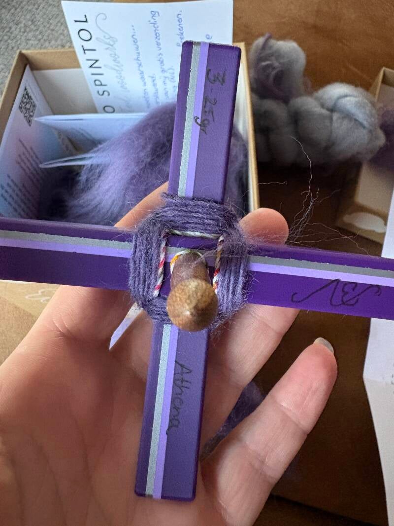 Ik heb 's middags even mijn Turkse spintol van Studiospintol erbij gepakt. Ik moest echt even stoppen met breien, maar mijn handen wilden nog wel bezig zijn. Het spinnen gaat al een beetje beter, maar ben nog niet tevreden genoeg. Het is echt moeilijk om een gelijkmatige draad te krijgen. Hier gaan nog heel veel uren oefenen in zitten en er gaan nog heel wat draden mislukken.