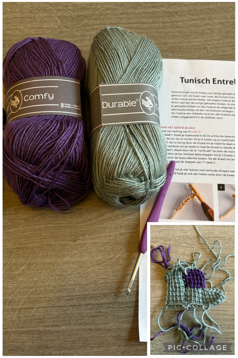 Zondag was het tijd voor workshop 3. Dit was bij Dennis (DenDennis). Hier leerde ik tunisch haken in een mix van Corner to corner, maar toch ook weer niet. Super leuke techniek voor een dekentje op de bank. Omdat ik niet zo lang kon haken, heb ik even de techniek geoefend en de kleurwissel en ben daarna netjes gestopt.