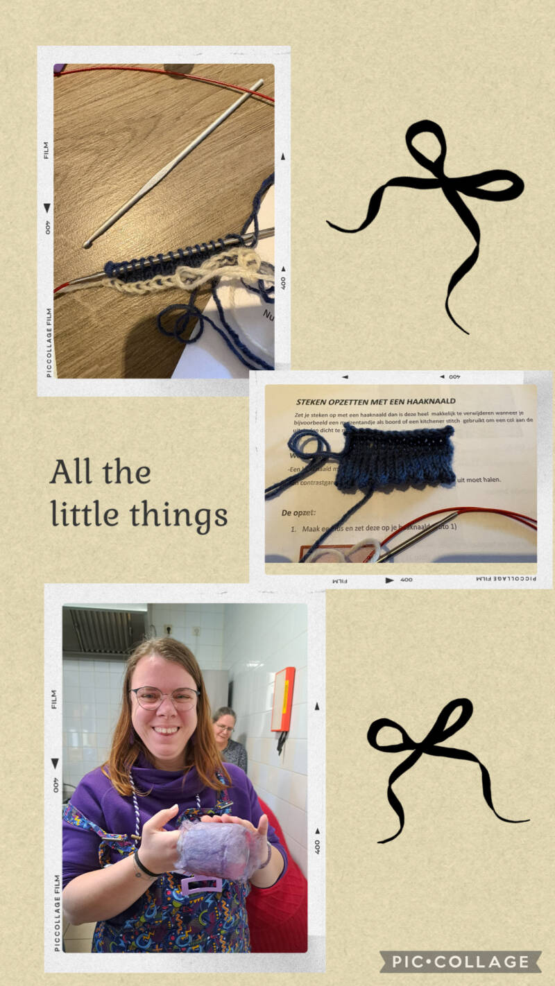 Op zaterdag begonnen de workshops. Ik mocht beginnen bij Bregina Tuinstra. Daar leerde we een nieuwe opzet techniek voor het breien. Dit was echt grappig, want je ging met behulp van je haaknaald steken op je breinaald opzetten.