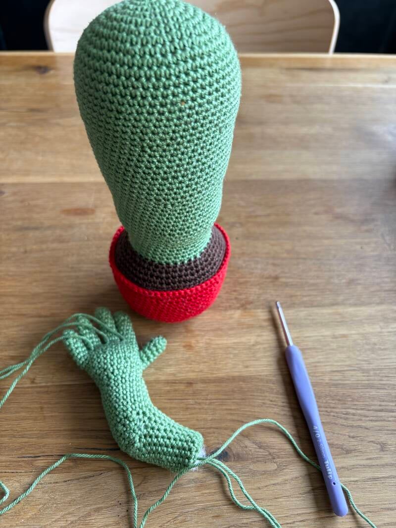 Ik heb een leuke bestelling binnen gekregen van een cactus met wat "frustratie". De foto is van vanmiddag. Inmiddels hoef ik de armen alleen nog maar vast te naaien en een bloemetje voor bovenop te haken. Het eindresultaat komt morgenavond online.