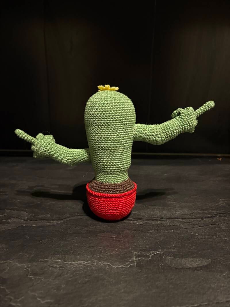 Ik ben wel in het plantjes thema gebleven. Het worden kleine cactussen in een echt bloempotje. Vanmiddag bedacht ik me, dat hij misschien wel nog echter ging lijken als ik erop zou prikvilten. En mijn plan pakt gewoon perfect uit.