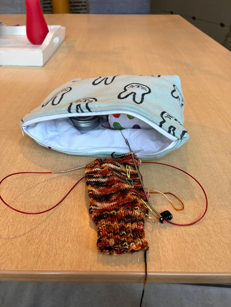 Woensdag moest ik 's avonds extra werken. Het is voor mij dan net te ver fietsen om tussendoor naar huis te gaan, dus ik had lekker een breiwerkje meegenomen om de wachttijd te verzachten.