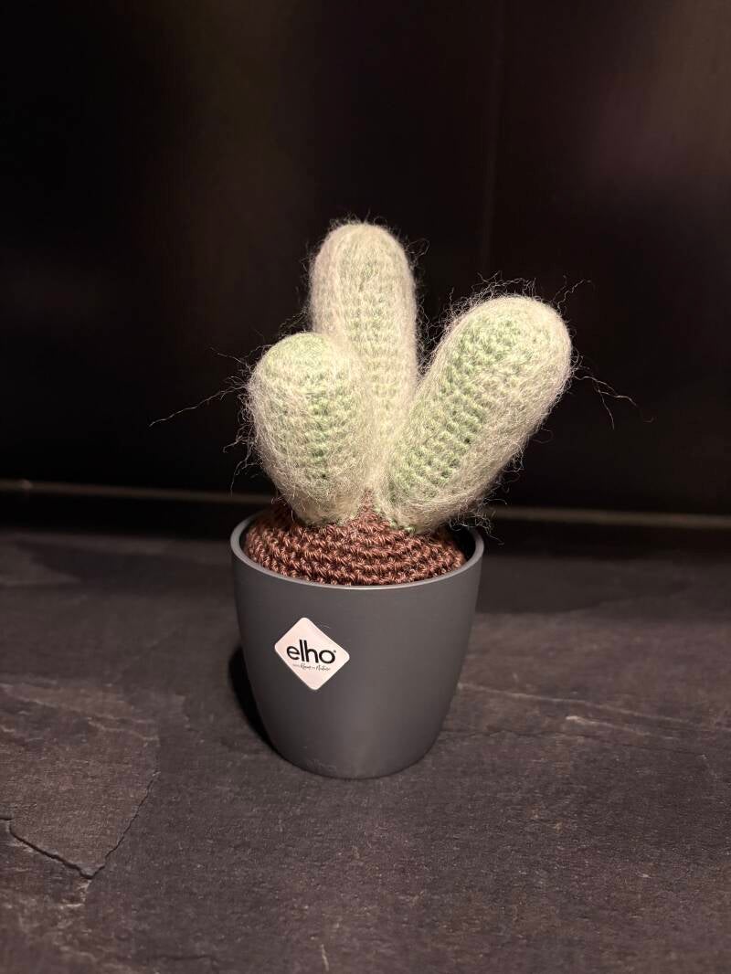 Na een paar keer uithalen, is het toch gelukt en past het echt perfect. Ik ben zo blij met het eindresultaat van dit mini cactusje. Voor deze cactus heb ik twee hobby's gecombineerd. Eerst heb ik alles gehaakt. Daarna heb ik lontwol op de cactus geprikvilt. Hierdoor lijkt hij net echt.